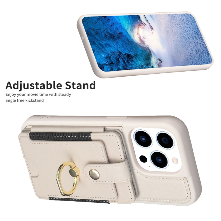 Funda para Teléfono iPhone 14 Pro Bf27 Soporte Tarjeta Anillo de Metal (Beige)