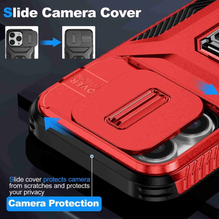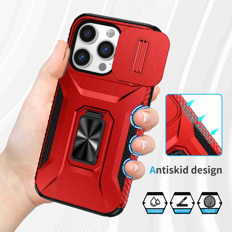Funda para Teléfono iPhone 14 Pro con Soporte Deslizante para Levas (Rojo)