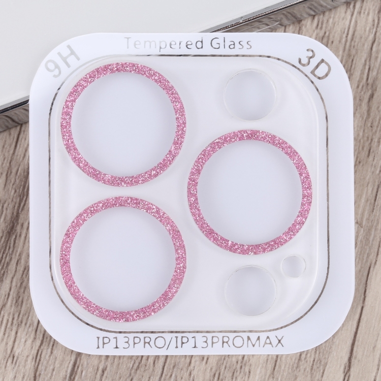 Película de Lente de Cámara de Vidrio Templado para iPhone 14 Pro Glitter Ring (Rosa)