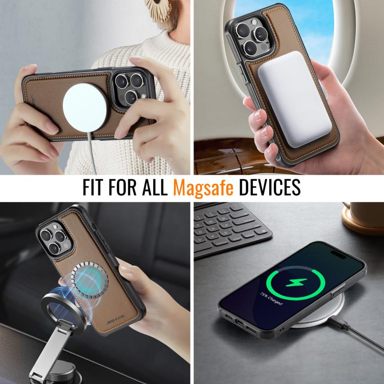 Estuche para Teléfono Jeehood J06 para iPhone 14 Pro con Tarjetero Rfid Magsafe Estilo Británico (Marrón)