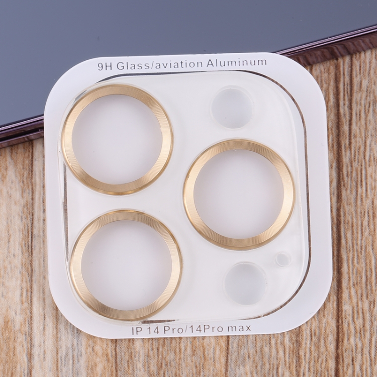Película de Cámara Trasera para iPhone 14 Pro Max y 14 Pro Vidrio Templado con Textura de Cd (Oro) 50PCs
