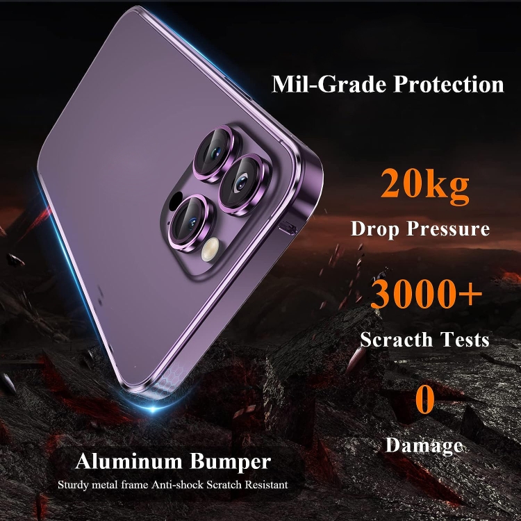 Marco de Metal Ultrafino + Lente + Juego de Protección para iPhone 14 Pro Max (Púrpura)