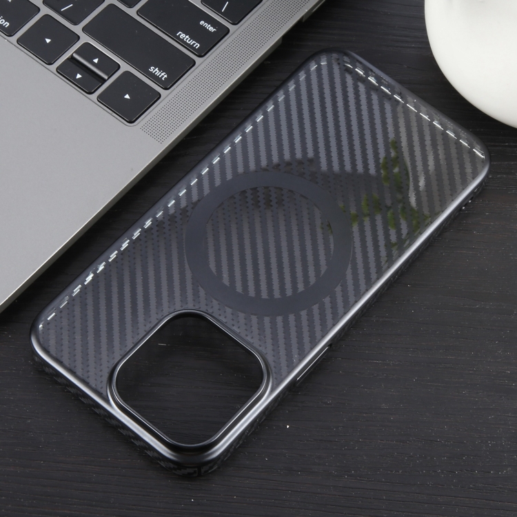 Caja de Teléfono para iPhone 14 Pro Max PC Magsafe Transparente Plateada con Fibra de Carbono (Negro Estrellado)