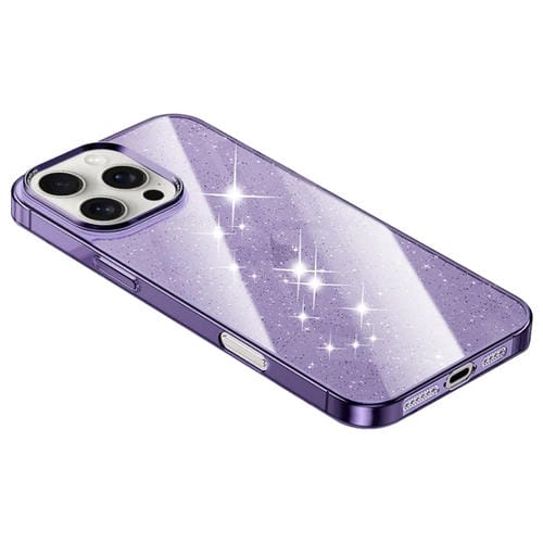 Caja de Teléfono Híbrida de Vidrio para iPhone 14 Pro Max con Brillo para PC Galvanizada (Púrpura)