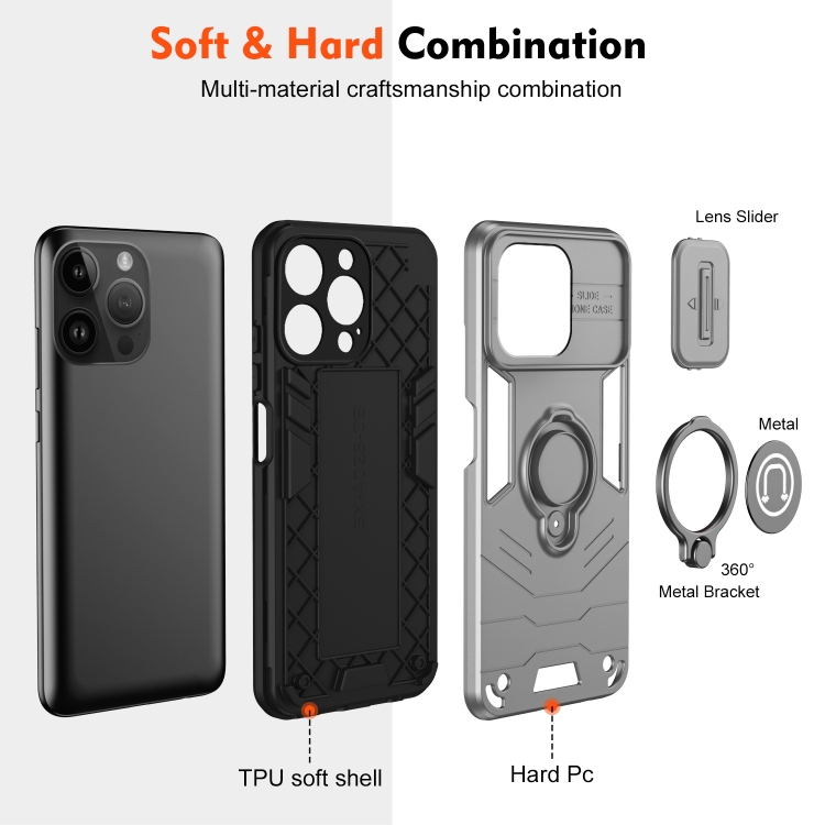Funda para Teléfono iPhone 14 Pro Max Camshield Ring Holder (Gris)