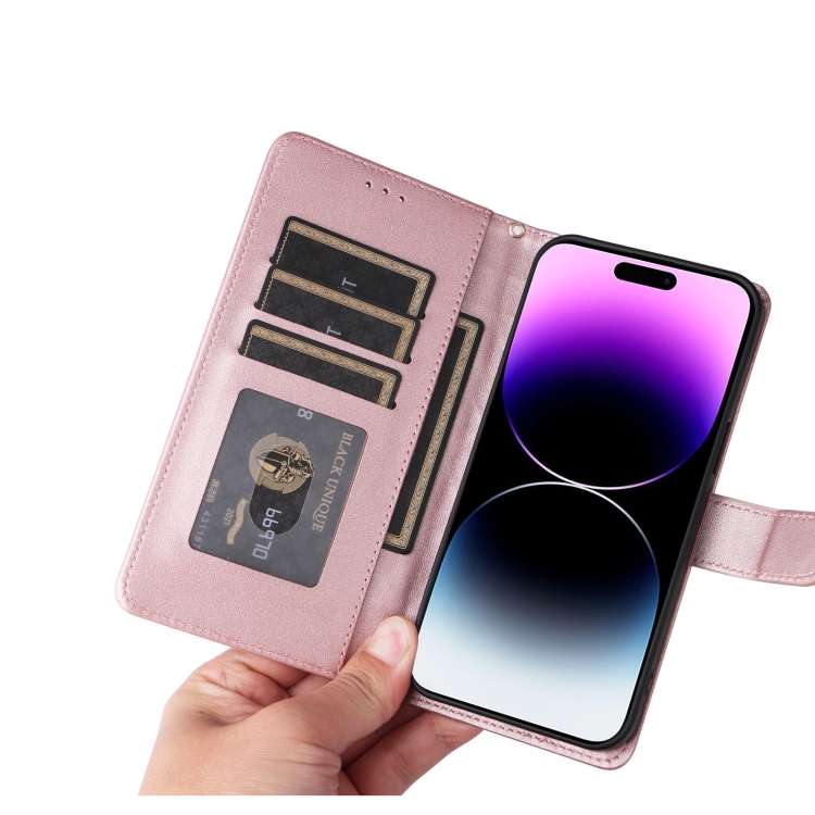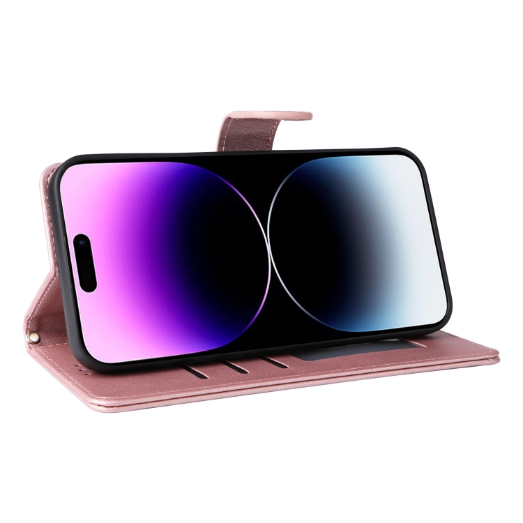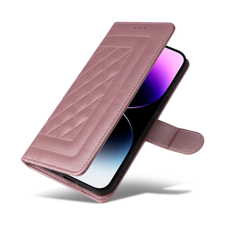 Funda para iPhone 14 Pro Max Diamond Lattice de Cuero con Tapa (Oro Rosa)