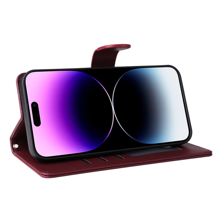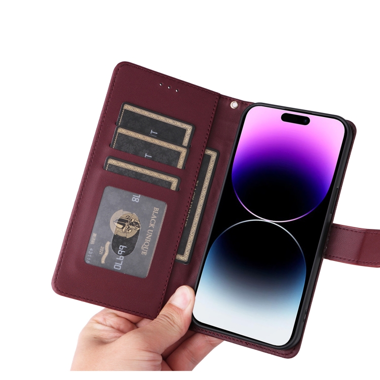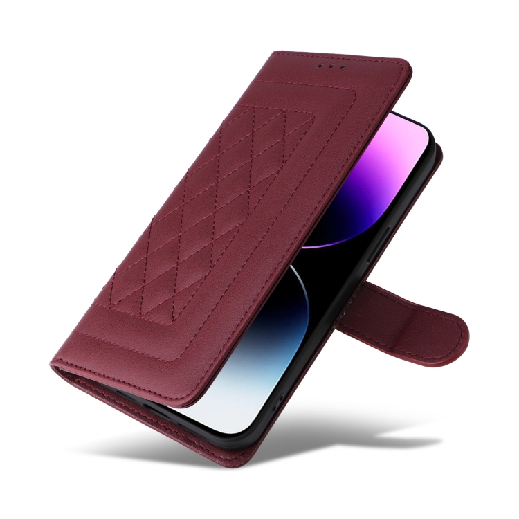 Funda para iPhone 14 Pro Max Diamond Lattice de Cuero con Tapa (Rojo Vino)