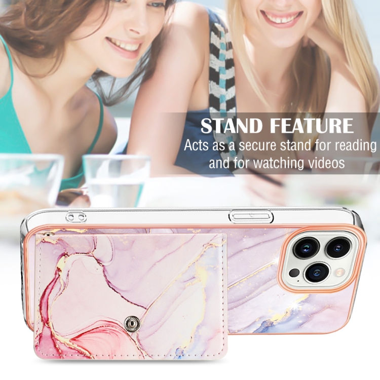 Estuche para Teléfono iPhone 14 Pro Max con Ranura para Tarjeta Imd y Patrón de Mármol (Oro Rosa)