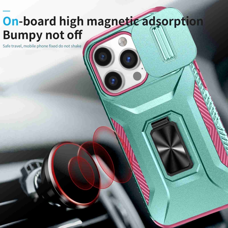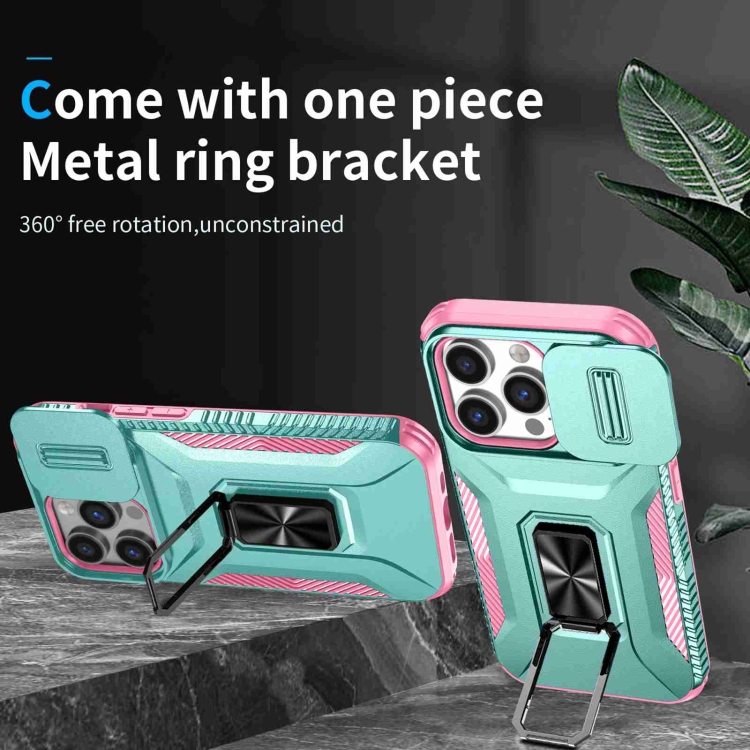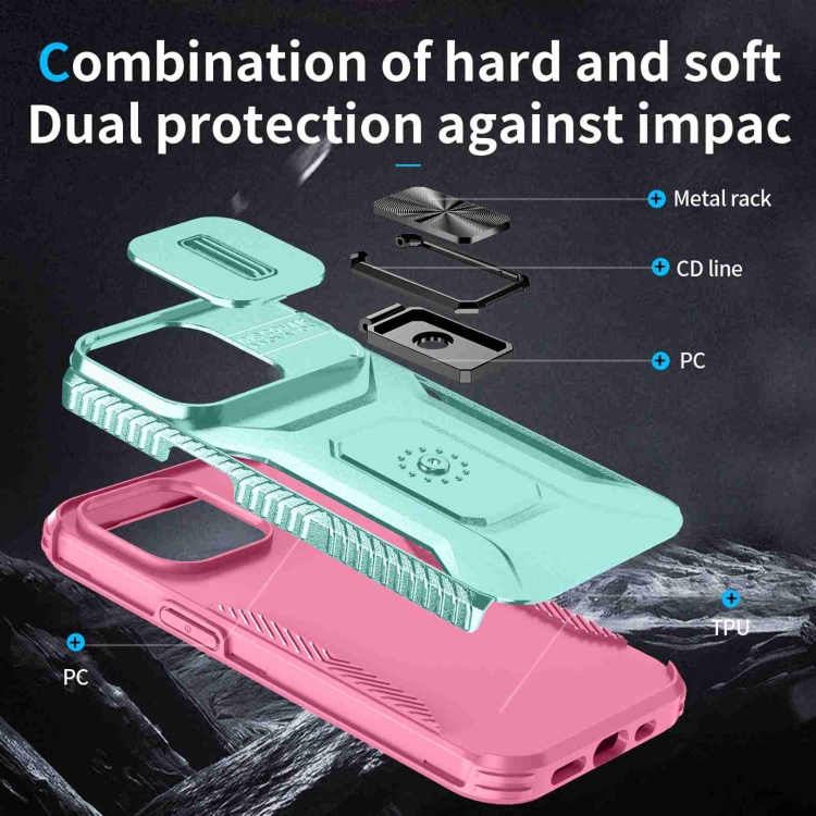 Estuche para Teléfono iPhone 14 Pro Max con Soporte Deslizante para Levas (Gris Verde + Rosa)