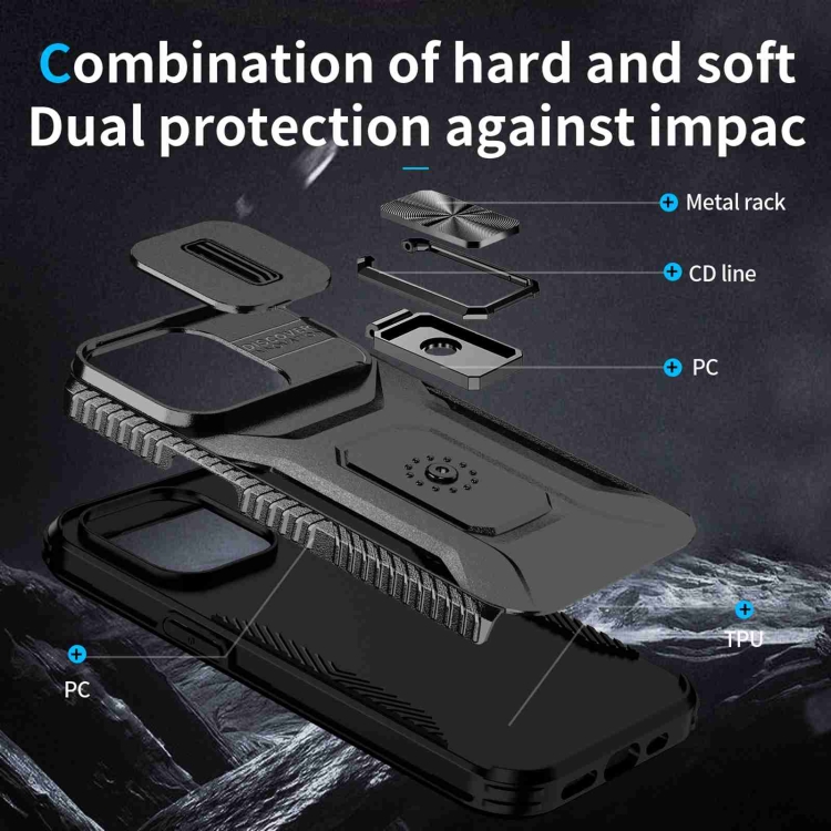 Estuche para Teléfono iPhone 14 Pro Max con Soporte Deslizante para Levas (Negro)
