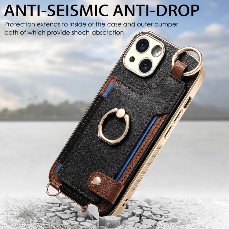 Funda para Teléfono iPhone 14 Pro Max Fashion Ring Card Bag con Lazo para Colgar (Negro)