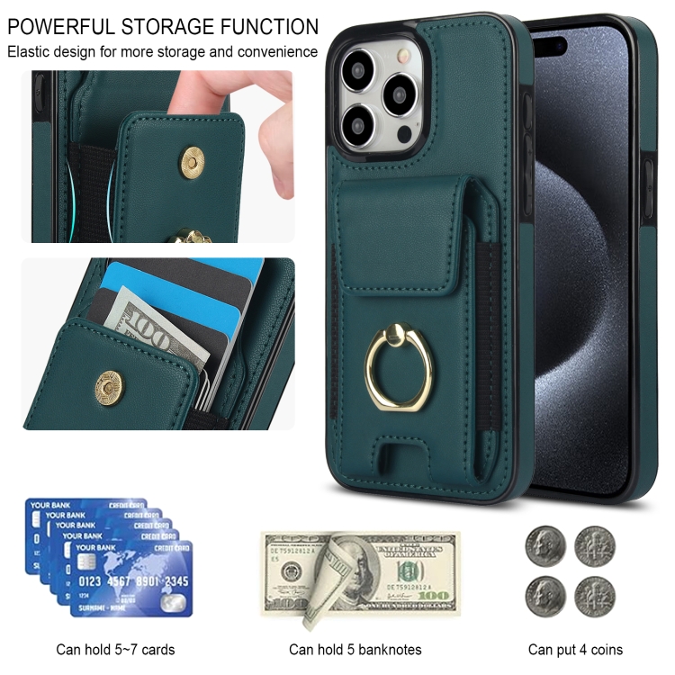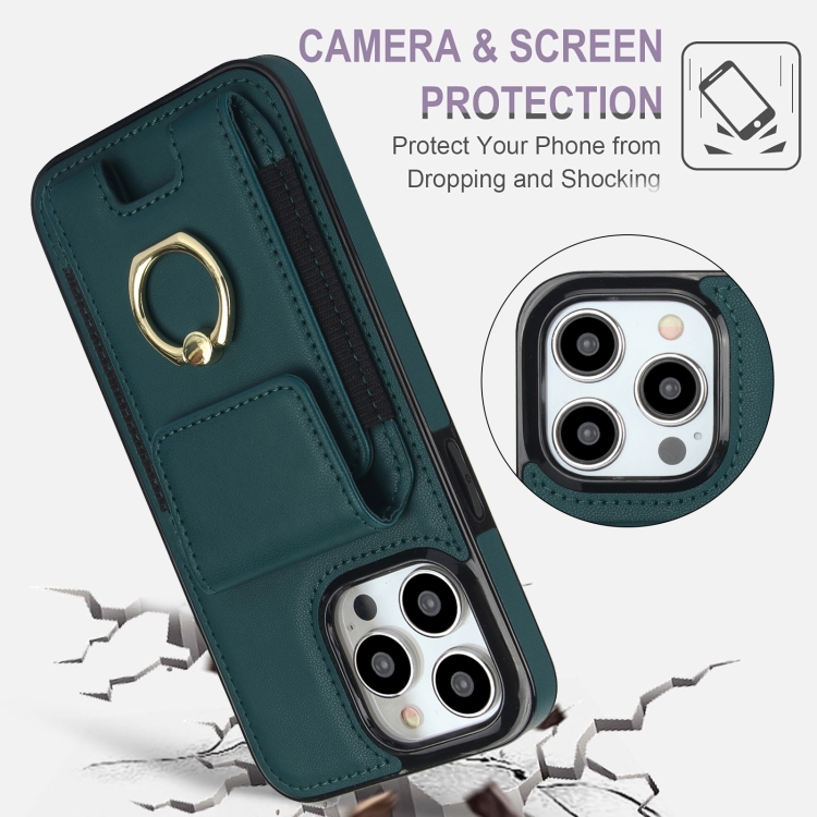 Funda Elástica para iPhone 14 Pro Max con Soporte para Anillo y Bolsa para Tarjetas (Verde Oscuro)