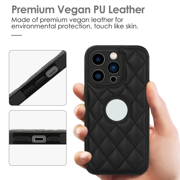 Funda para Teléfono iPhone 14 Pro Max Contraportada de Cuero Rómbico (Negro)