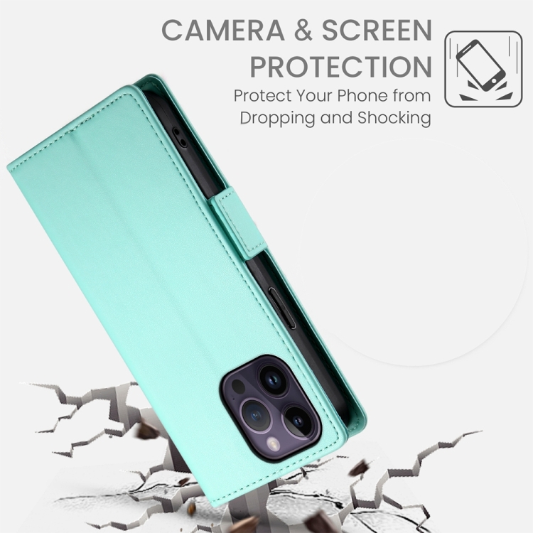Funda para teléfono iPhone 14 Pro Max cuero esmerilado magnético con hebilla lateral (Verde Menta)