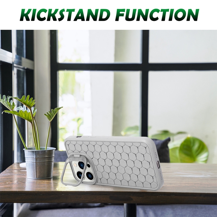 Funda para teléfono TPU iPhone 14 Pro Max Honeycomb Radiating Lens Holder (Gris)