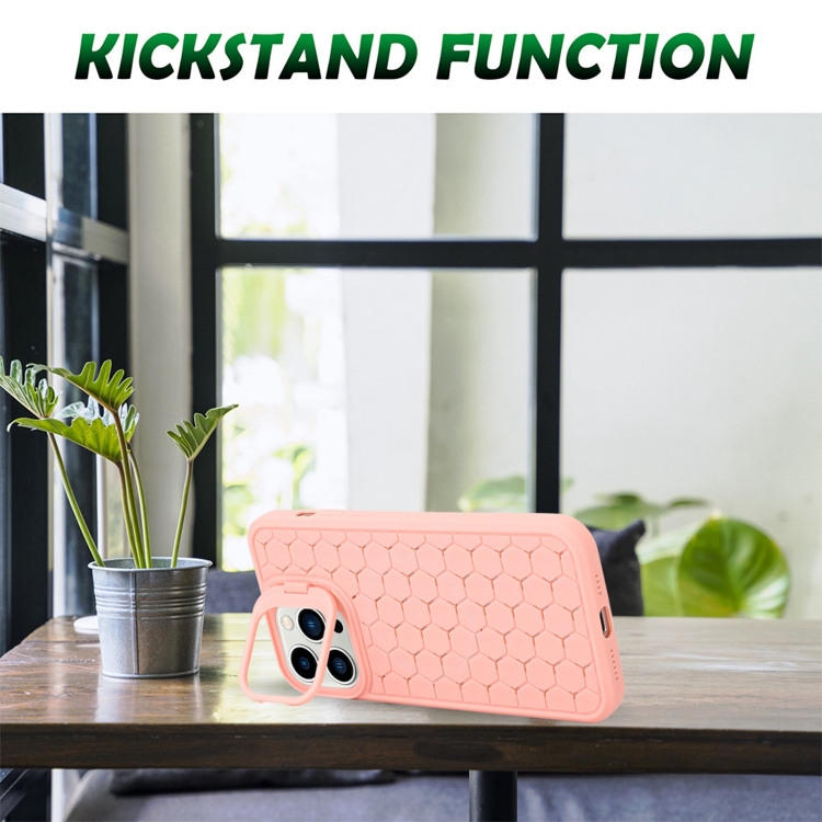 Funda para Teléfono iPhone 14 Pro Max Honeycomb Radiating Lens Holder TPU (Rosa)