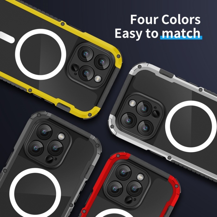 Caja de Teléfono para iPhone 14 Pro Max Magsafe Metal a Prueba de Golpes (Plata)
