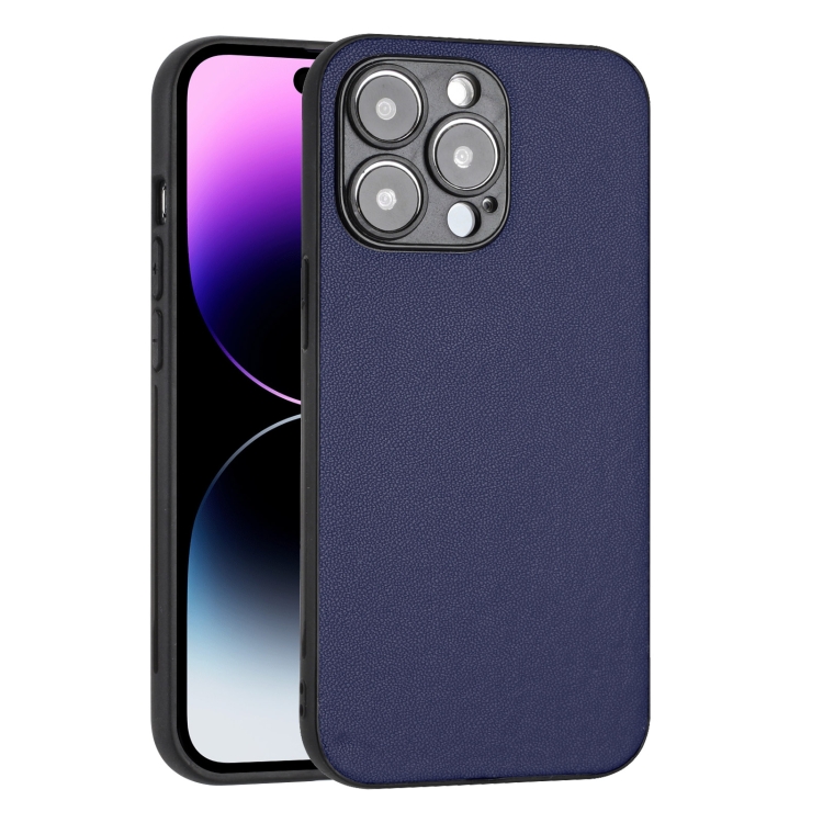Funda para iPhone 14 Pro Max R20 con Patrón de Cuero (Azul)