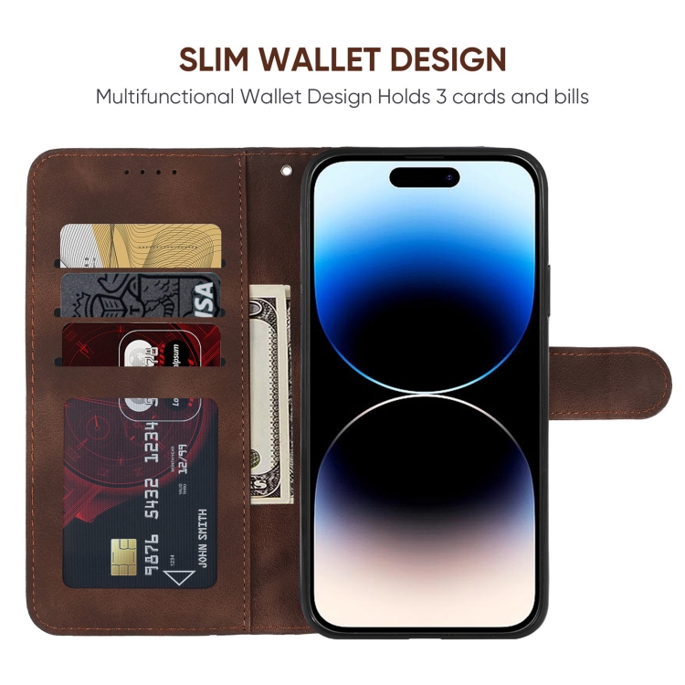 Funda para iPhone 14 Pro Max Skin Feel Cuero Líneas Geométricas (Marrón)