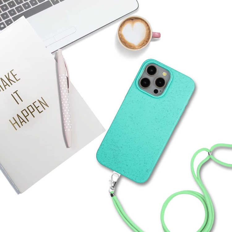 Funda para iPhone 14 Pro Max Wheat Magsafe Material de Paja Magnético + TPU con Cordón (Verde)