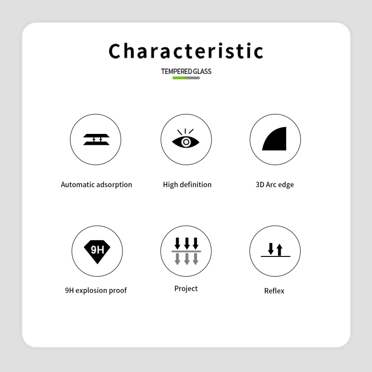 4. Funcional. El protector de pantalla puede adaptarse bien a su teléfono y marcar una gran diferencia en la protección de su teléfono contra rasguños, huellas dactilares, agua, aceite, polvo, golpes, resbalones, etc. Cuando se mancha con agua, tierra, barro, aceite u otros accesorios, se se puede limpiar sin esfuerzo.