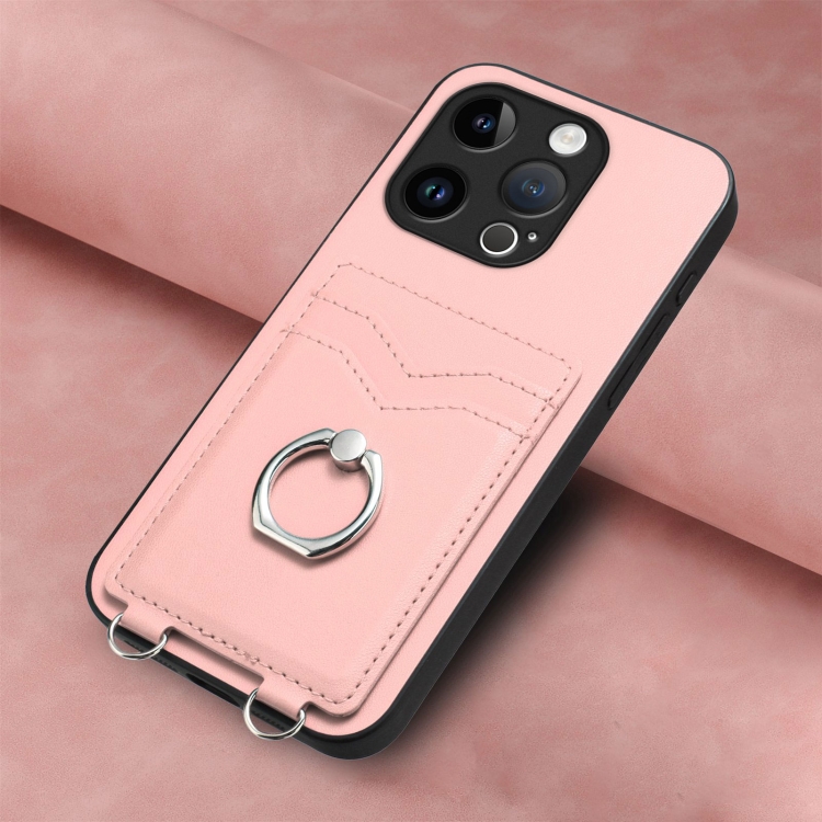 Estuche para Teléfono iPhone 14 Pro R20 con Soporte para Tarjeta y Anillo (Rosa)