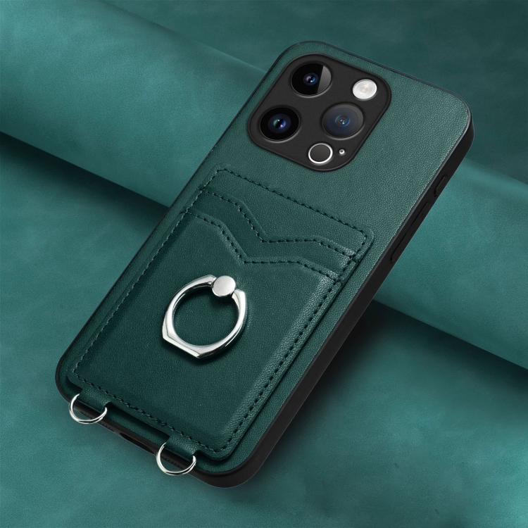 Estuche para teléfono iPhone 14 Pro R20 con soporte para tarjeta y anillo (Verde)