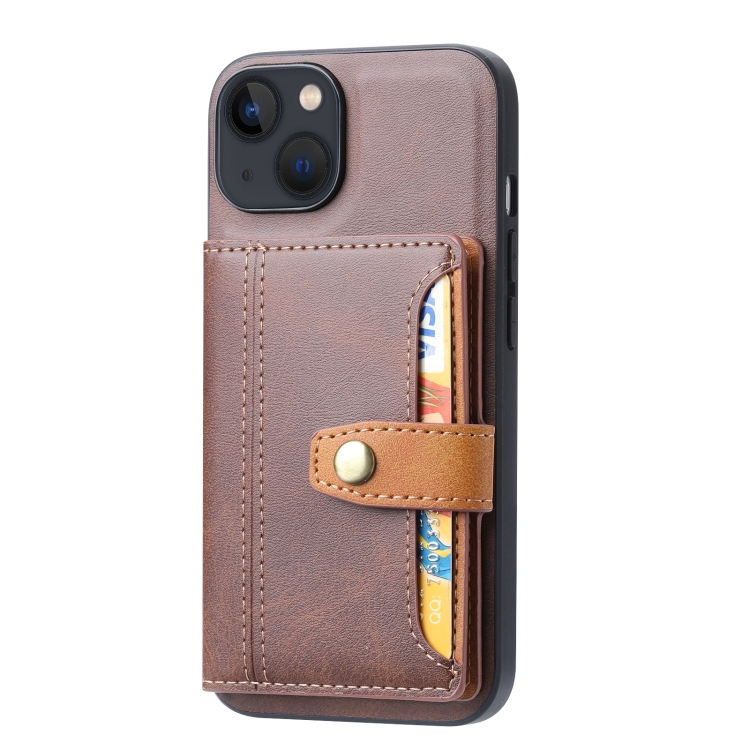 Funda para teléfono iPhone 14 TPU y Piel de Becerro con ranura para tarjeta (Marrón)
