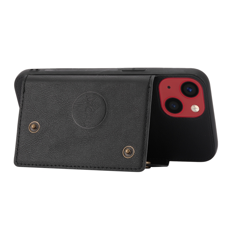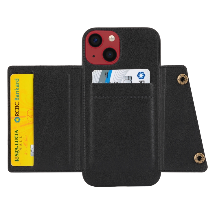 Funda para Teléfono iPhone 14 Ranuras para Tarjetas con Doble Hebilla PU + TPU (Negro)