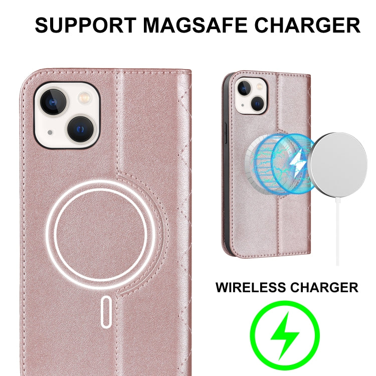 Funda para iPhone 14 Rhombic Magsafe Rfid Antirrobo Cuero Tipo Billetera (Oro Rosa)