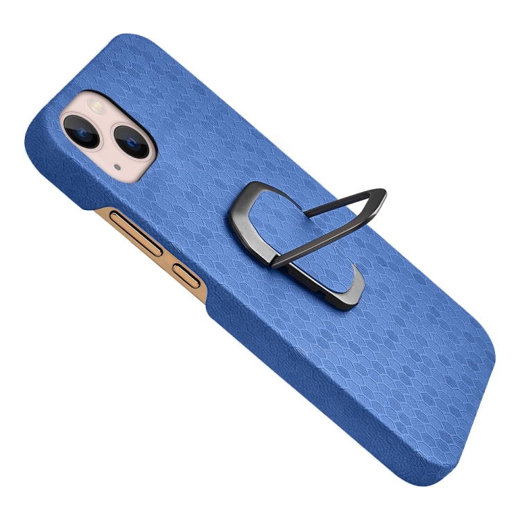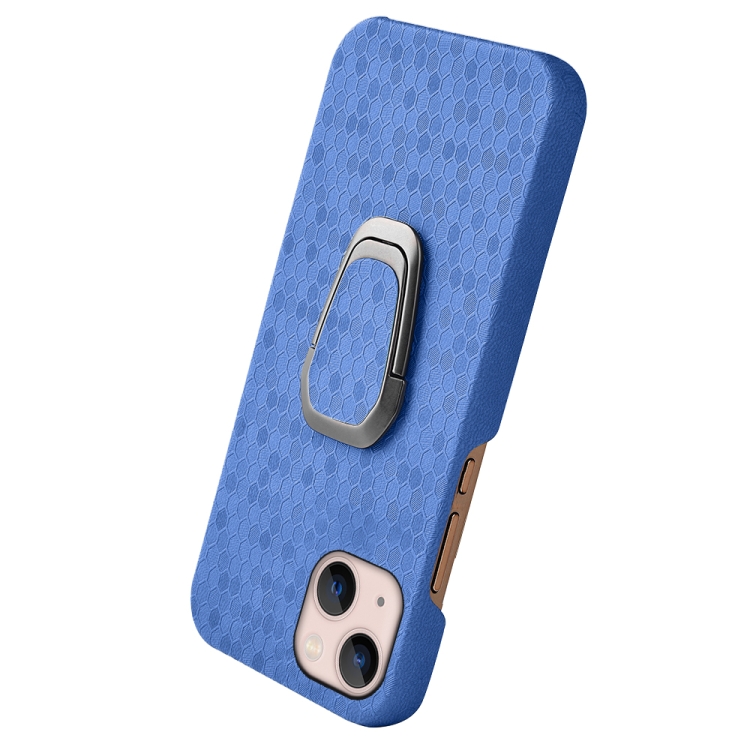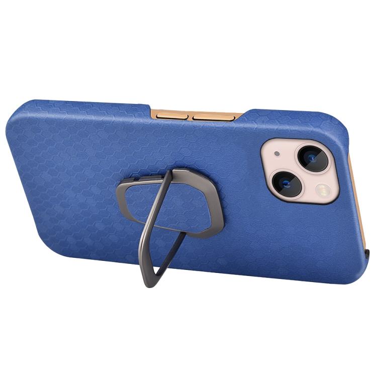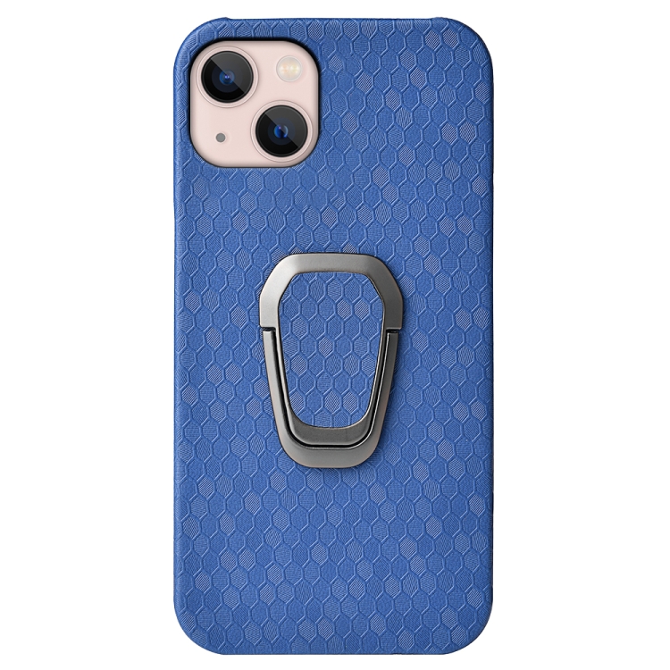 Funda para iPhone 14 Ring Holder Honeycomb PU Case (Azul Marino)