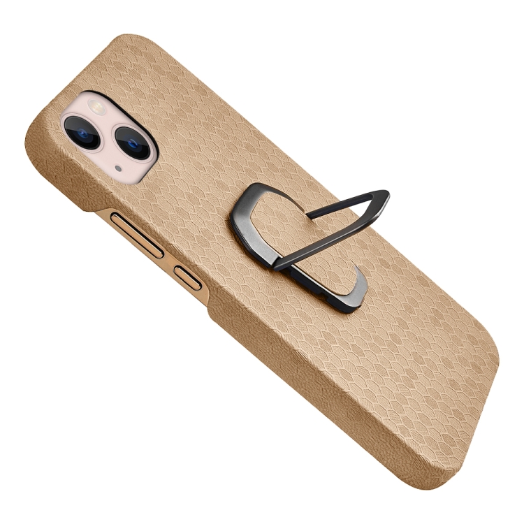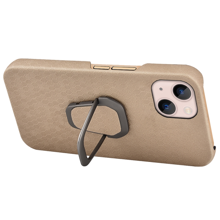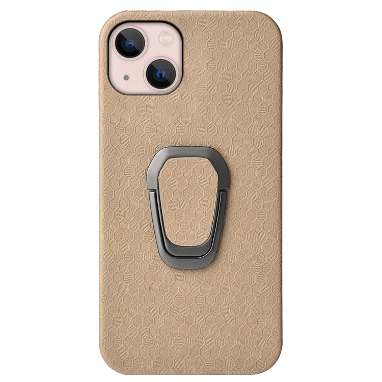 Funda para iPhone 14 Ring Holder Honeycomb PU Phone Case (Café)
