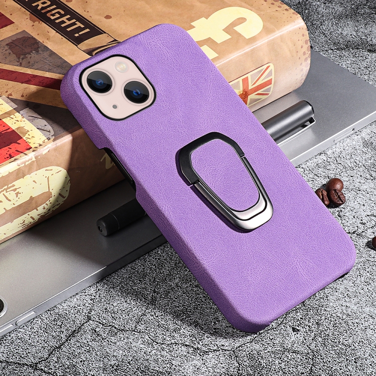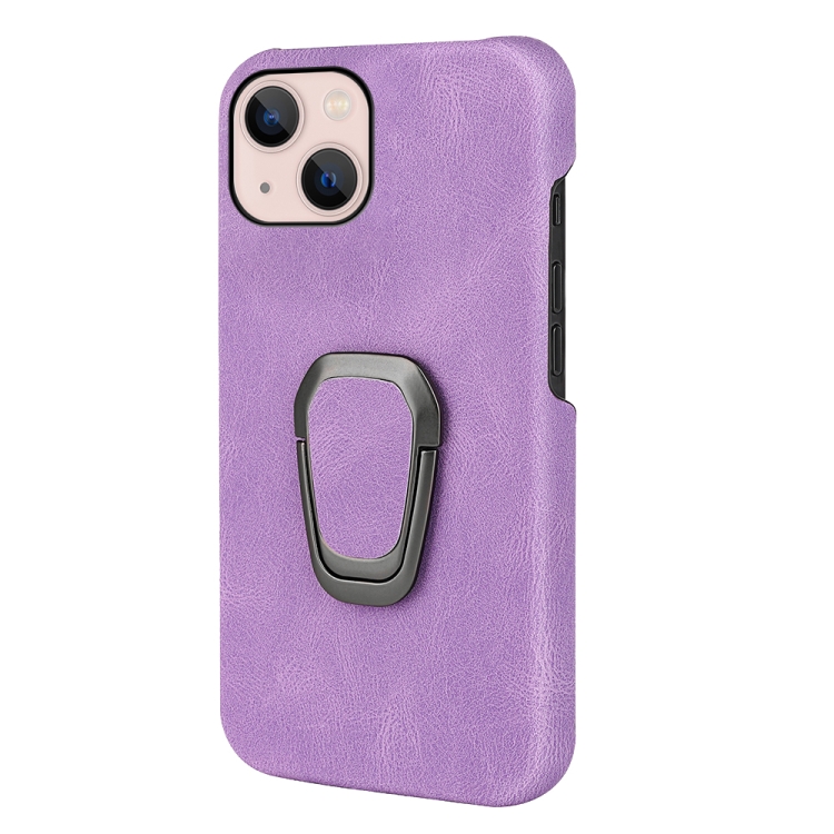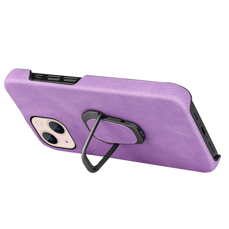 Funda para iPhone 14 Ring Holder PU Phone Case (Púrpura)
