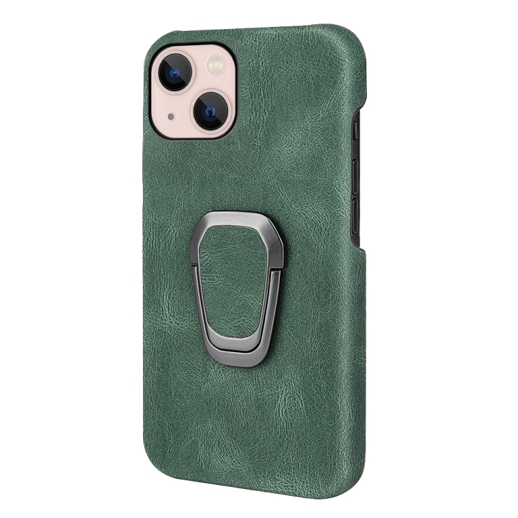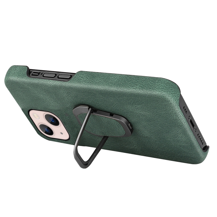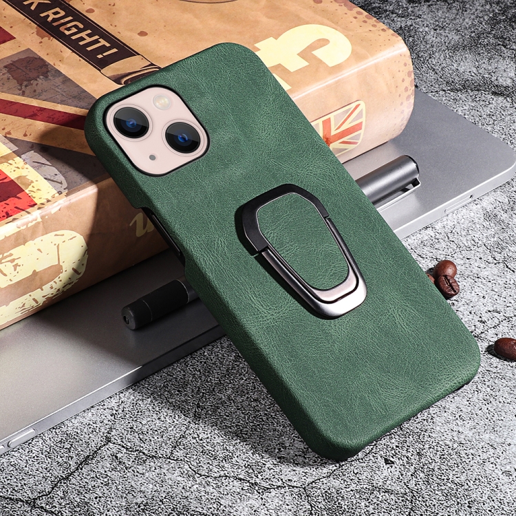 Funda para iPhone 14 Ring Holder PU Phone Case (Verde Oscuro)
