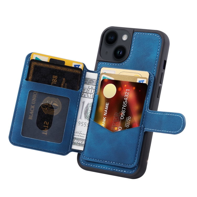 Funda para Teléfono iPhone 14 Skin Feel Dream Cepillo Antirrobo a Prueba de Golpes Portátil para Tarjeta (Azul Pavo Real)