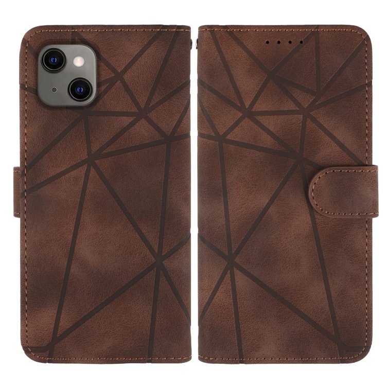 Funda de Cuero para iPhone 14 Skin Feel con Líneas Geométricas (Marrón)
