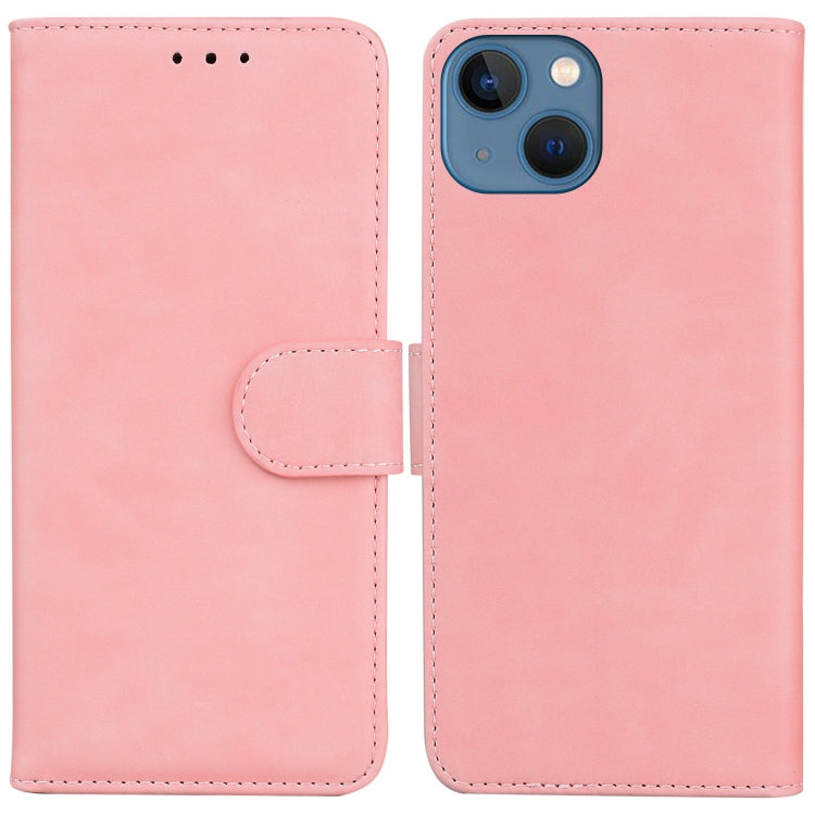 Funda de Cuero Flip para iPhone 14 Skin Feel Pure Color (Rosa)