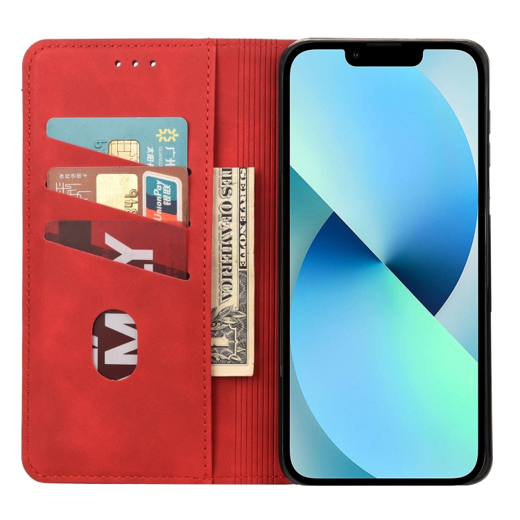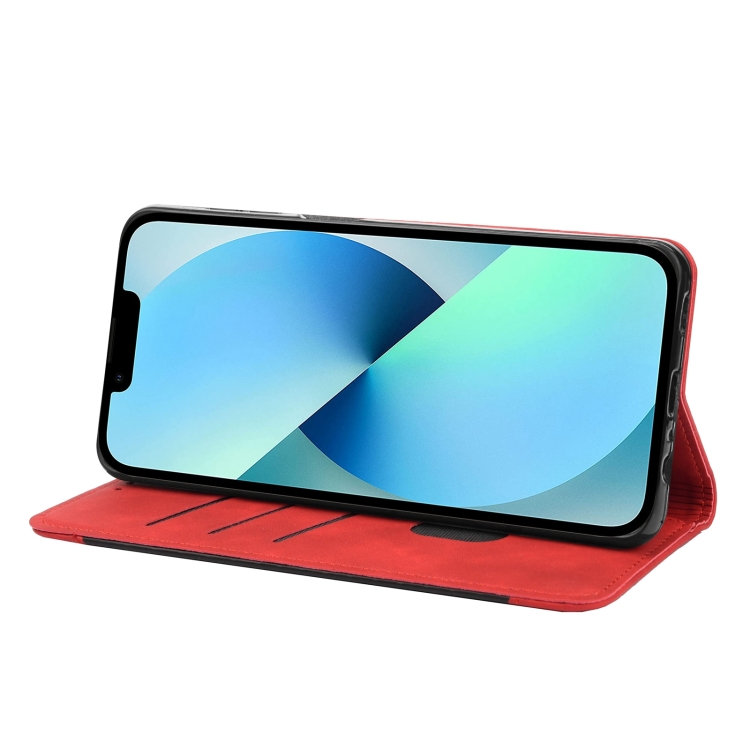 Funda para iPhone 14 Skin Feel Splicing Leather Case (Rojo)