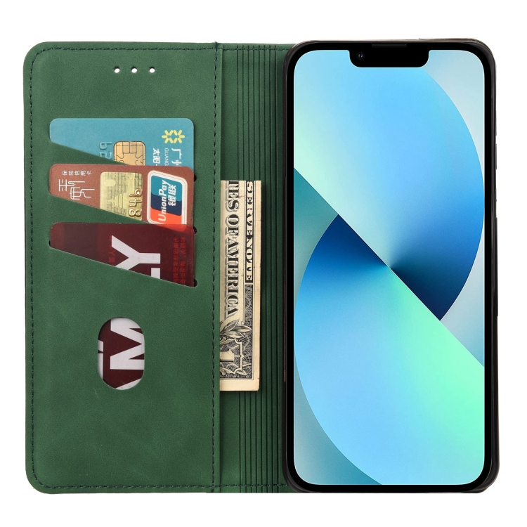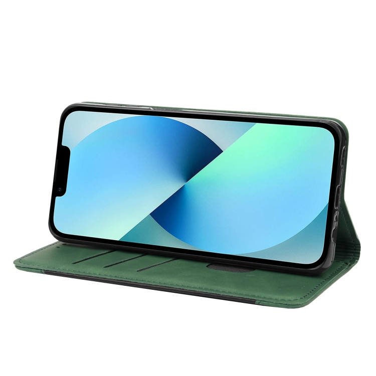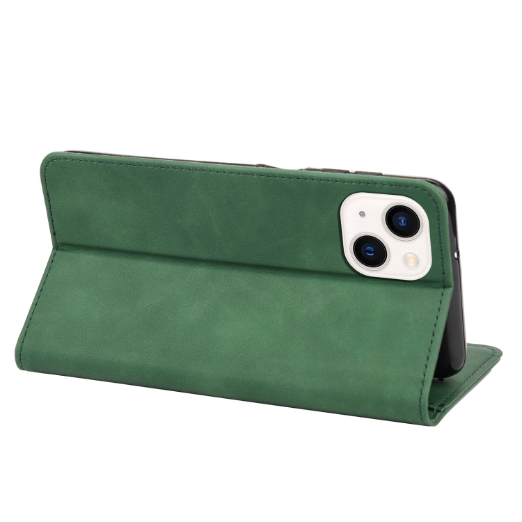 Funda para iPhone 14 Skin Feel Splicing Leather Phone Case (Verde)