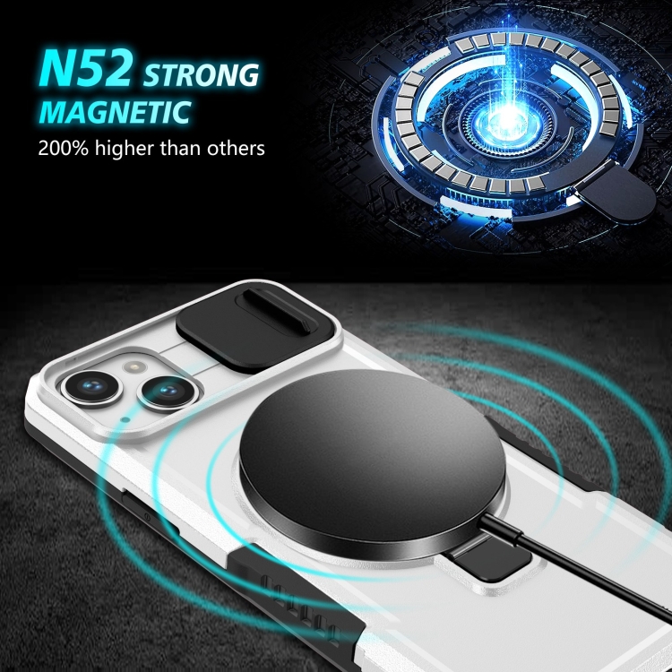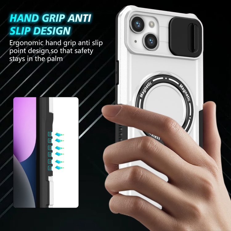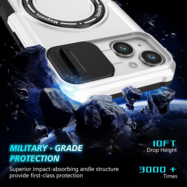 Funda para Teléfono iPhone 14 Sliding Camshield Magsafe Holder TPU Hybrid (Negro Blanco)