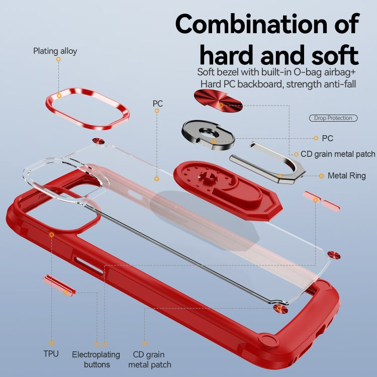 Estuche para Teléfono iPhone 14 TPU + PC con Protección de Lente y Soporte para Anillo (Rojo)