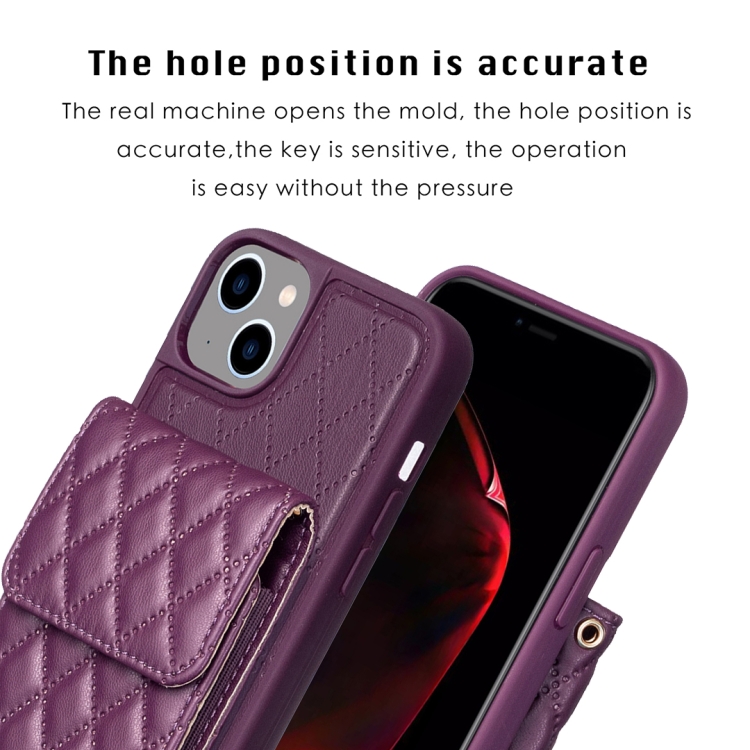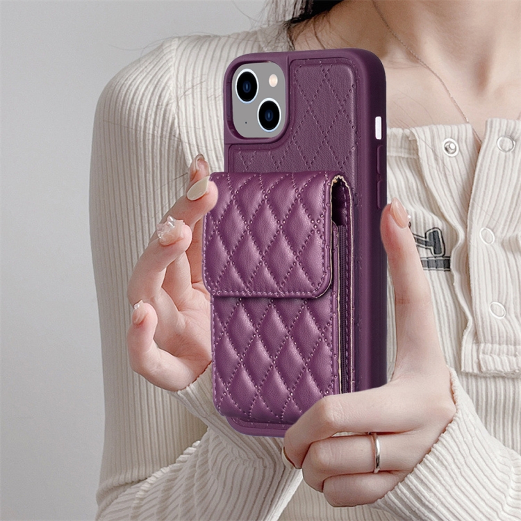 Funda de Cuero Vertical Wallet para iPhone 14 Rhombic (Púrpura Oscuro)