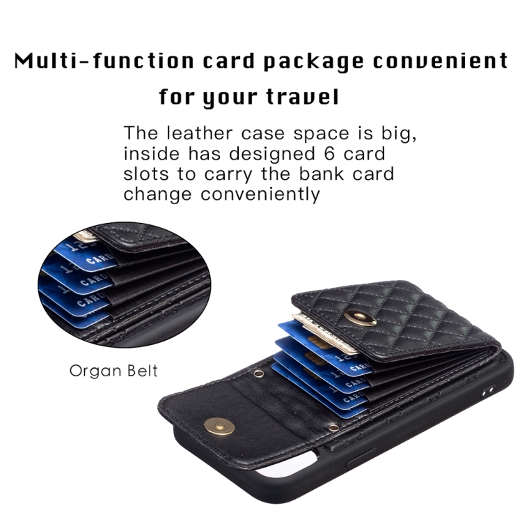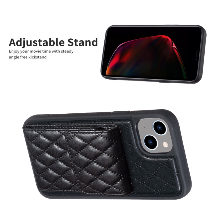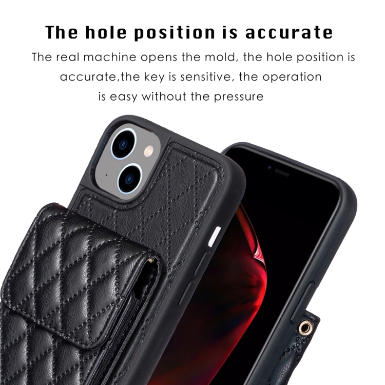 Funda para iPhone 14 Vertical Wallet Rhombic Leather Phone Case (Negro)