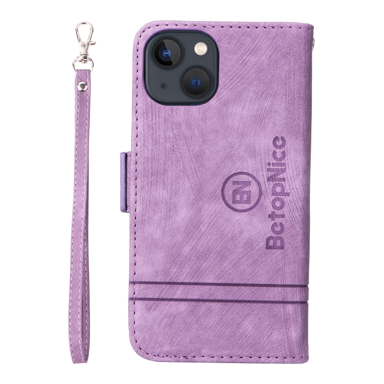 Funda de Cuero Betopnice para iPhone 15 con Hebilla de Doble Cara (Púrpura)