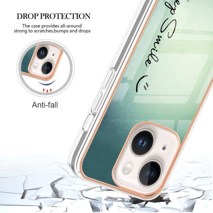Caja de Teléfono para iPhone 15 Imd Doble Cara Mármol Galvanoplastia (Sonrisa)
