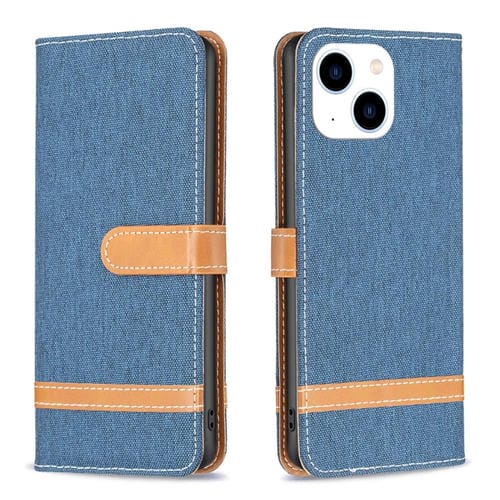 Funda para iPhone 15 Color Block Denim Texture Leather Phone Case (Azul Oscuro)