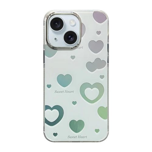 For iPhone 15 Cooling Flash Feather TPU+PC Phone Case(Love Heart)