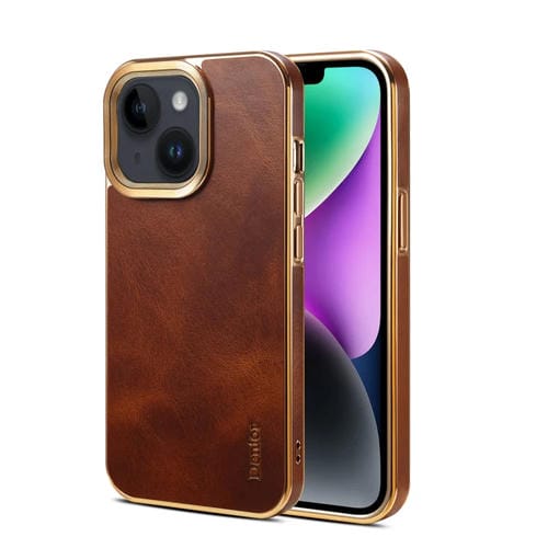 For iPhone 15 Denior Oil Wax Cowhide Plating Phone Case(Brown)