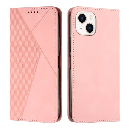 Funda para iPhone 15 Diamond Splicing Skin Feel Magnética de Cuero (Oro Rosa)