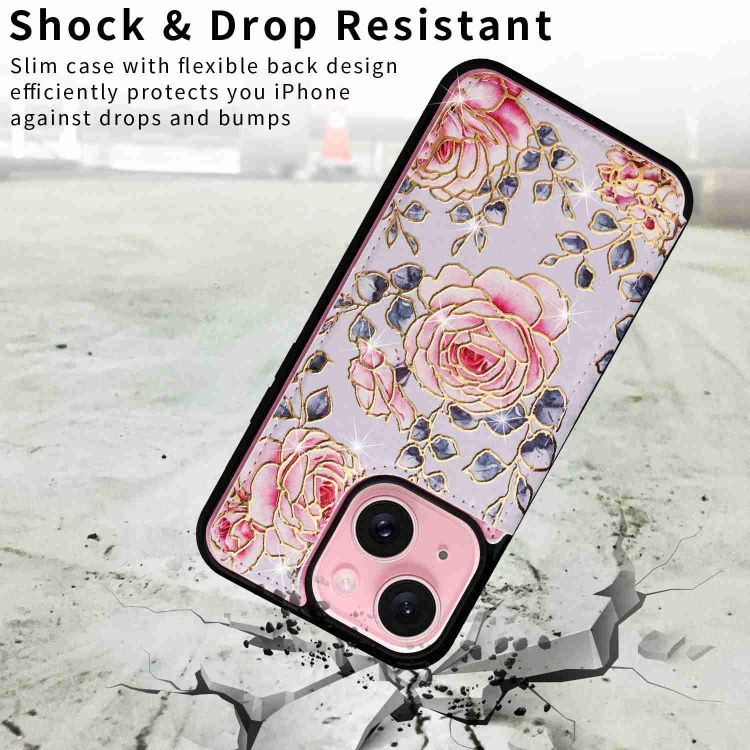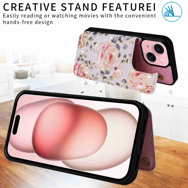 Estuche Antirrobo Rfid para iPhone 15 con Doble Hebilla Impresa (Rosa Pastoral)
